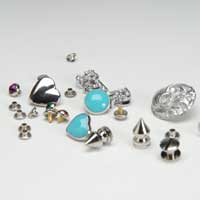 デコレーション 飾りカシメはクロスやハート、ボーン、肉球、クローバー、角、円錐 ターコイズカラー、ロンドン鋲 様々なアイテムを使ってデコレーションしてください |