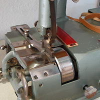 ニッピー革漉機 革の厚さを整える機械 首輪などは2枚合わせにする場合は革を割って厚さを調整します 革の折り目、縫い代等に斜め漉きや平漉きをします 絶対必要!便利な機械なのです 革漉機って何?(もっと詳しく) |