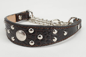 3kg以下のワンコ用ハーフチョーク ナチュラルヌメに着色し打刻印 製作時間3時間 |